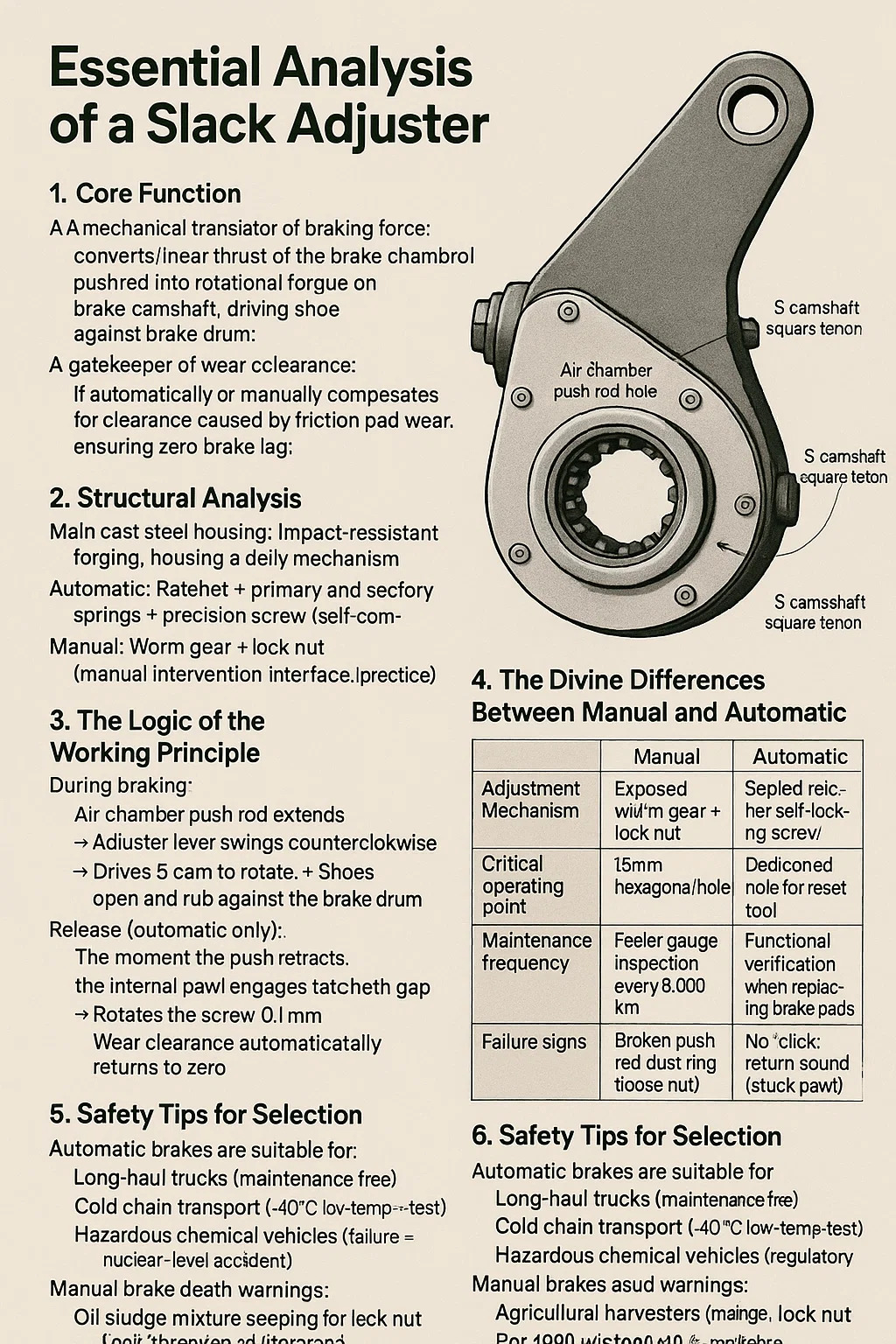 Mechaniczny tłumacz siły hamowania: Przekształca nacisk liniowy popychacza komory hamulcowej na moment obrotowy na wałku rozrządu hamulca, dociskając klocek do bębna hamulcowego.